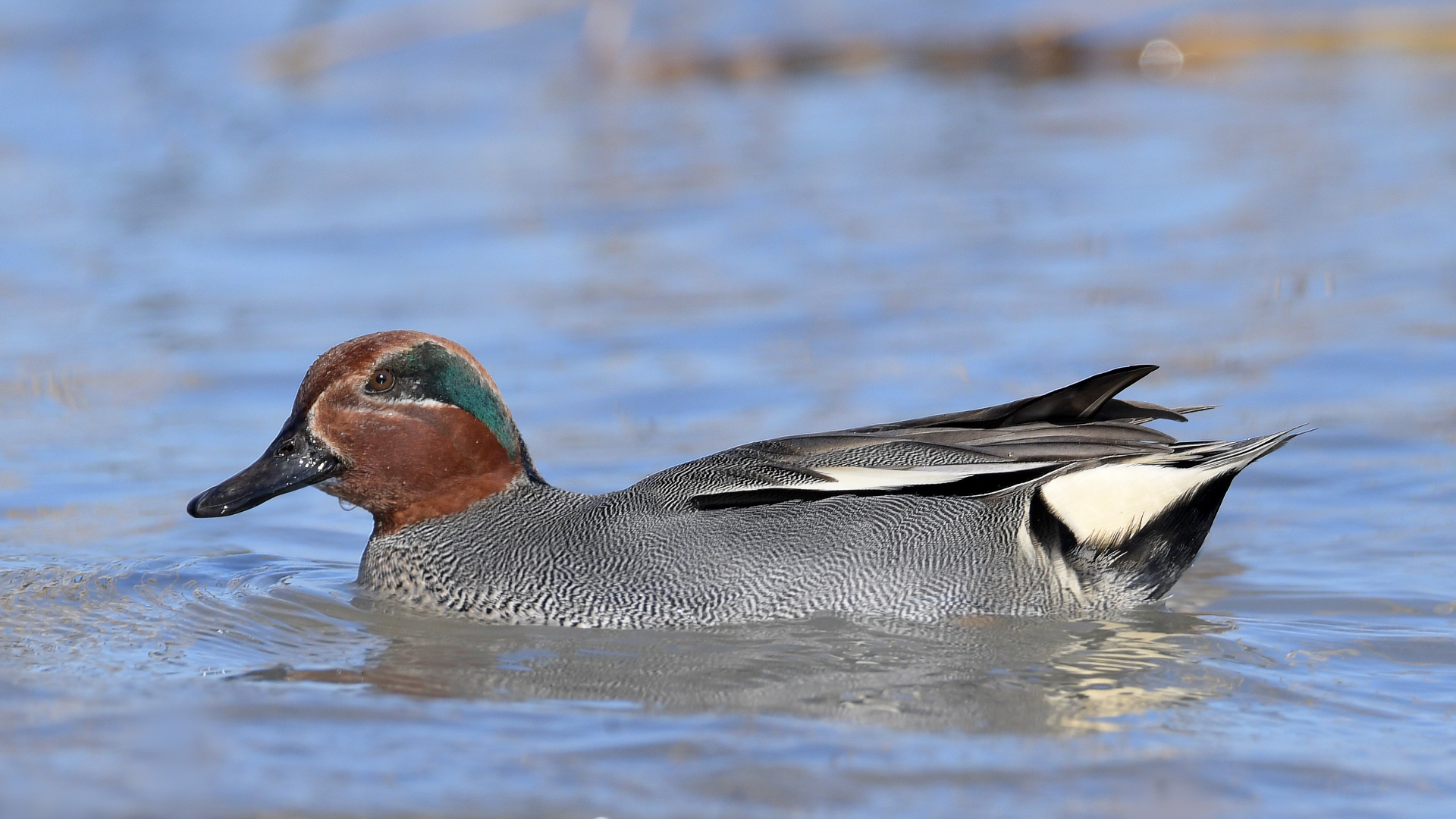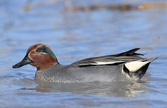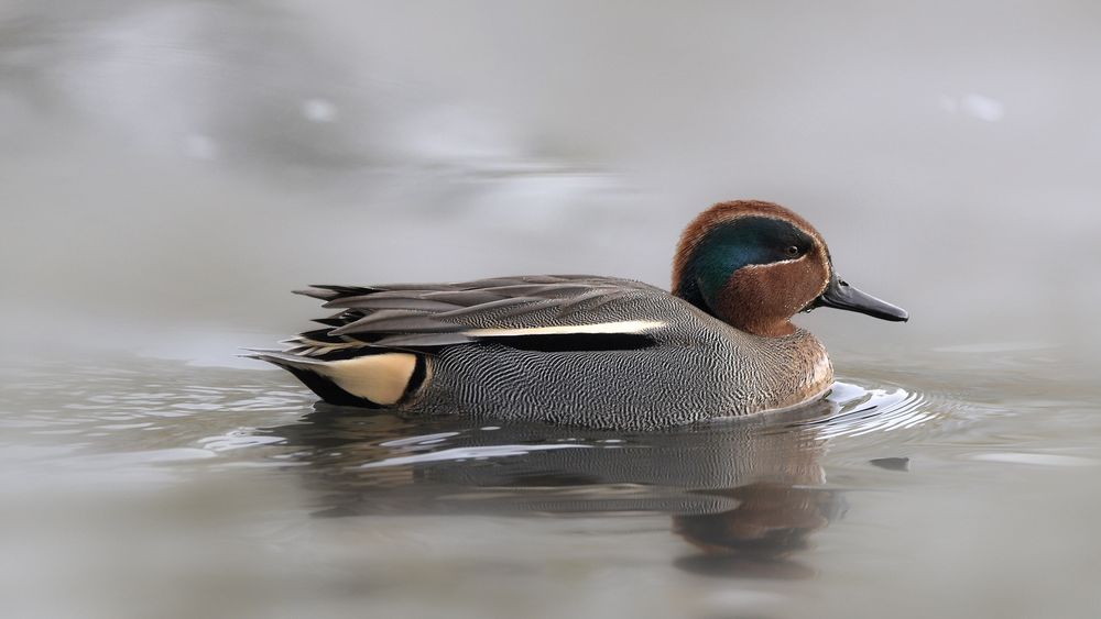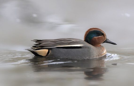 Die Krickente (Anas crecca) ist eine Vogelart aus der Familie der Entenvögel und gehört zur Gattung der Eigentlichen Enten (Anas). Krickenten zählen zu den zahlreichsten und am weitesten verbreiteten Entenarten der nördlichen Hemisphäre. Es sind gesellige Enten, die leicht an ihrem kleinen Körperbau zu erkennen sind. Mit 35 bis 36 cm Länge ist sie in Europa und Nordamerika die kleinste Entenart. Sie ist damit kaum länger als eine Stadttaube. In Mitteleuropa ist sie ein verbreiteter und regional häufiger Brutvogel, der gebietsweise sogar ein Jahresvogel ist. Im Winterhalbjahr ist sie ein häufiger Durchzügler und Gastvogel. Die Nordamerikanische Krickente wird von manchen Autoren als eigenständige Art angesehen und somit als Anas carolinensis beschrieben. Sie unterscheidet sich jedoch nur geringfügig von der Krickente und wird im Allgemeinen als eine ihrer Unterarten, Anas crecca carolinensis, angesehen. (Quelle Wikipedia)