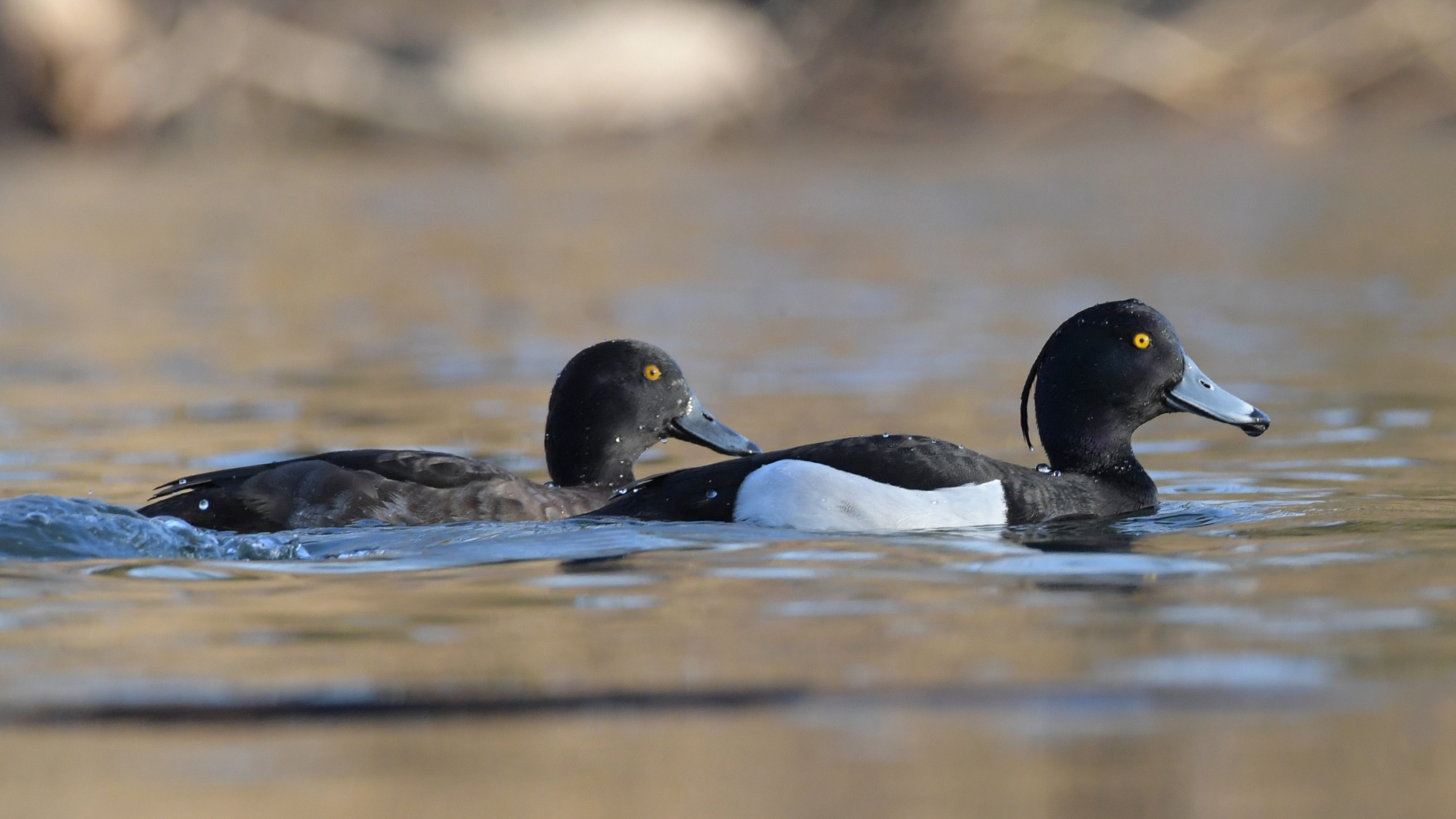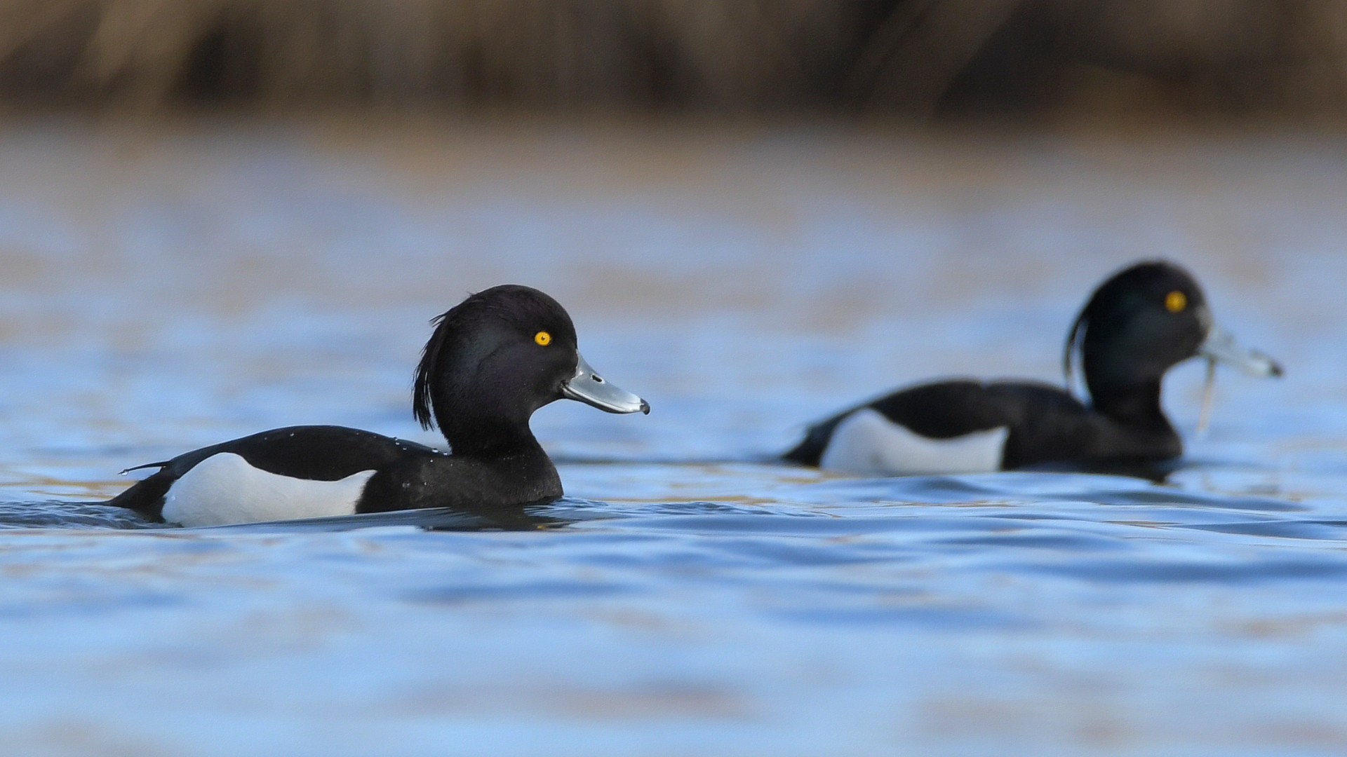 Die Reiherente (Aythya fuligula) ist eine Vogelart aus der Familie der Entenvögel (Anatidae). Sie gehört zu den häufigsten Tauchenten Europas und ist vor allem durch den auffälligen Federschopf des Männchens gut zu erkennen. Die Körperlänge der Reiherente beträgt etwa 40 bis 47 Zentimeter, die Flügelspannweite liegt zwischen 65 und 72 Zentimetern. Das Männchen besitzt während der Brutzeit ein kontrastreiches schwarz-weißes Gefieder mit schwarzem Kopf, schwarzer Brust und hellem Körper, während das Weibchen überwiegend braun gefärbt ist. Charakteristisch für beide Geschlechter sind die leuchtend gelben Augen sowie der kurze, kräftige Schnabel, der an der Spitze eine dunkle Färbung aufweist.