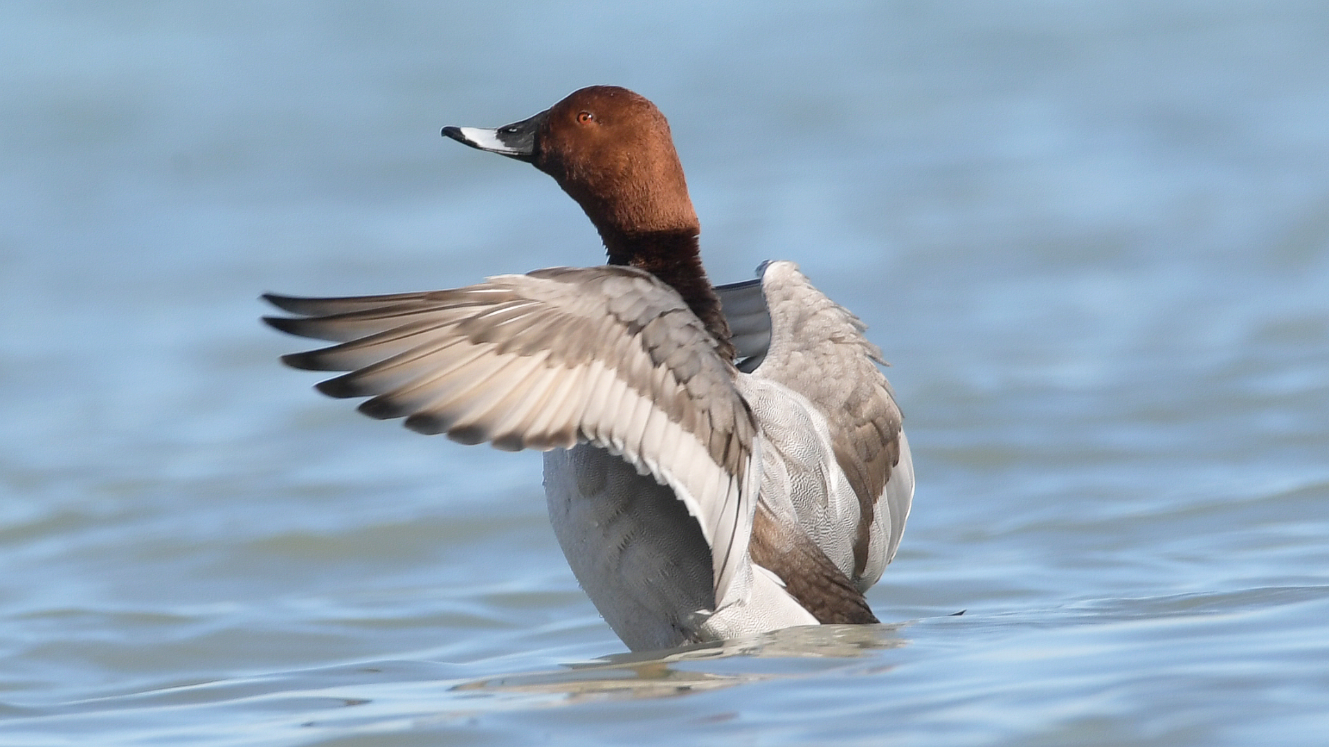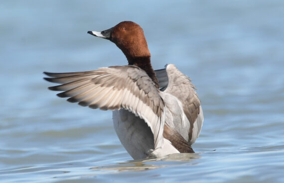 Die Tafelente (Aythya ferina) ist eine mittelgroße Tauchente aus der Familie der Entenvögel (Anatidae). Sie wirkt kompakt gebaut mit rundlichem Kopf, kurzem Hals und kräftigem Körper. Charakteristisch ist der breite, blaugraue Schnabel mit schwarzer Spitze. Das Männchen im Prachtkleid besitzt einen kastanienbraunen Kopf und Hals, eine schwarze Brust sowie einen hellgrau fein gewellten Rücken. Das Weibchen ist insgesamt unauffälliger gefärbt und zeigt überwiegend braune Gefiedertöne mit etwas hellerem Gesicht und dunkler Brustpartie.